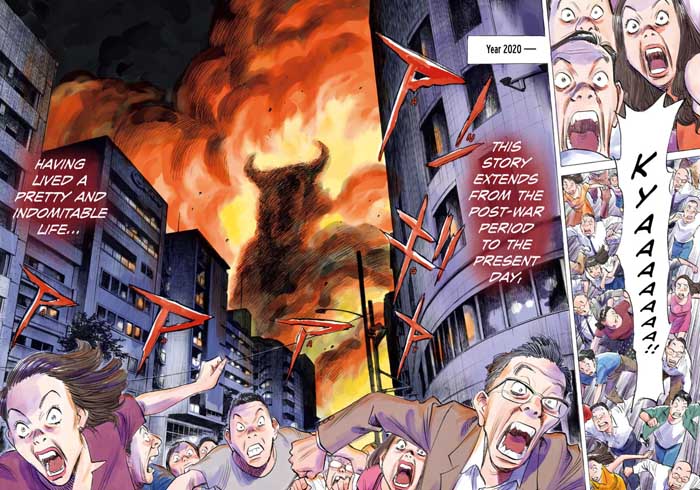 O quadrinho se inicia em 2020, justamente quando desses enormes monstros invade Tóquio destruindo tudo o que encontra pela frente. A história então é pausada e retorna a 1959, quando a menina Asa, de 12 anos de idade, corre pelas ruas de Nagoya em busca de um médico que ajude a mãe a dar a luz ao décimo-primeiro irmão dela.