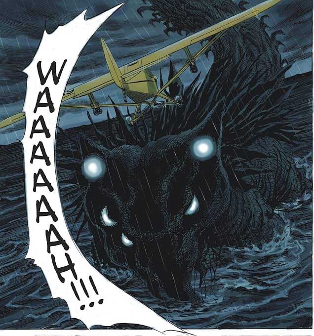 Isso mesmo, em meio a dramas do dia a dia e fatos reais, Urusawa faz surgir os famosos, adorados e estranhos monstros gigantes que infestam a cultura popular nipônica – e que há muito tempo já viraram até nome de subgênero de ficção científica e filmes, em especial graças a Godzilla e da monstruosas mariposa Mothra.