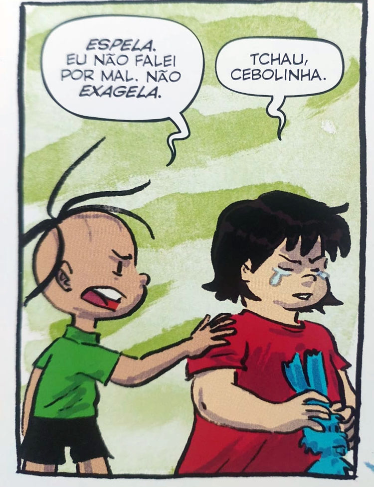 Vale ressaltar ainda o trabalho que Borges faz nos diálogos paralelos entre os pais de Cebolinha, tentando entender o que está acontecendo com o filho e meio perdidos em relação a como agir para garantir o melhor para ele. Diálogos que espelham uma realidade conhecida por muitos pais e que fazem a diferença na HQ. Aliás, a carta que seu Cebola escreve para o filho é de uma sinceridade tocante, assim como o diálogo da mãe com o menino sobre consertar coisas quebradas.