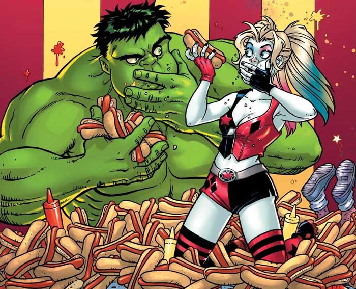 Mas as 64 páginas do gibi, ainda sem preço divulgado, não trarão apenas o crossover principal. Além dele, o leitor irá conferir encontros entre Demolidor e Arqueiro Verde, com roteiro de Kevin Smith (o aclamado diretor de O Balconista ) e desenhos de Adam Kubert; Capitão América e Mulher-Maravilha, por Chip Zdarsky e Terry Dodson; Jeff o Tubarão Terrestre e Krypto (ai, ai ai) por Kelly Thompson e Gurihiru; e Rocket Racoon e Lanterna Verde, por Al Ewing e Dike Ruan.