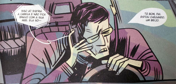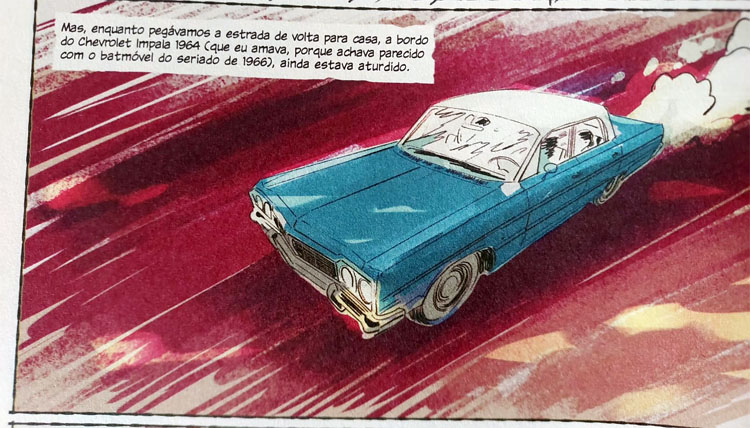 Cabe aqui um parêntese para elogiar a arte sensacional de Jefferson Costa. Além dos ótimos desenhos e domínio de cores e claro/escuro que traduzem o clima de cada momento, o requinte e atenção aos detalhes do desenhista são fora de série. Carros de época, cenários de São Paulo, pormenores da casa dos Gusman e até mesmo de objetos reais da família são retratados com uma perfeição obsessiva pelo artista e enriquecem por demais a Graphic Novel.