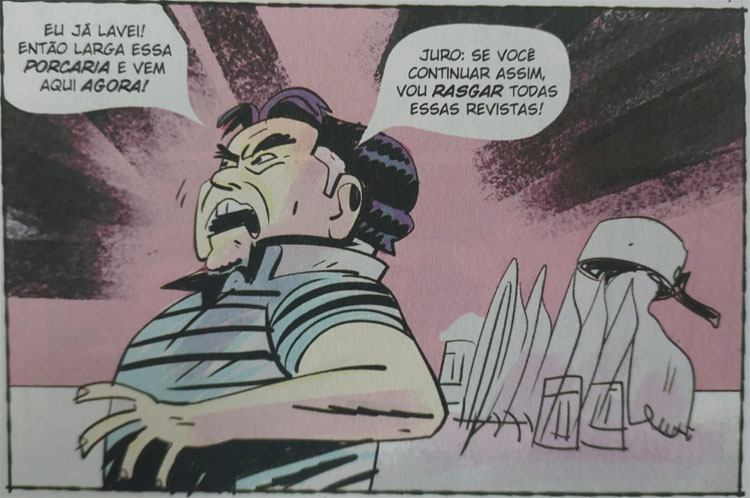 Também há capítulos que mostram mais da relação do autor (e do pai) com as Histórias em Quadrinhos, incluindo o primeiro contato de Gusman com um gibi e o confronto que as HQs acabam gerando entre ele e o pai. Há um determinado momento em que a paixão do garoto faz com que Domingos se se enraiveça e, com rispidez e palavras pesadas, diga ao filho que aquilo não o levará a lugar nenhum.
