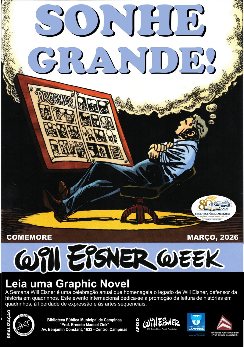 Campinas é uma das cidades que dedica os trinta dias de março para celebrar o criador do Spirit (e do conceito de Graphic Novels, entre outras coisas) e neste ano a Gibiteca da cidade – localizada dentro da Biblioteca Pública Municipal “Professor Ernesto Manoel Zink” – tem programação mais do que especial.
