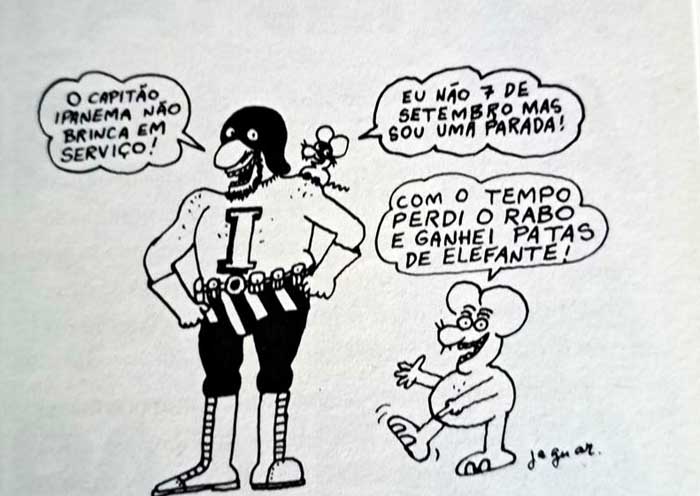 Jaguar chegou a ser preso pela ditadura em 1970 após publicar nas páginas do Pasquim uma montagem do quadro “Independência ou morte” na qual fez Dom Pedro dizer “Eu quero é mocotó” em um balão de diálogo.