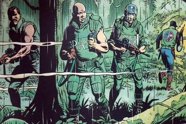 A partir daí a genialidade de Miller só se acentua, com as tensões nacionais e internacionais crescendo enquanto a agora sargento Martha Washington tenta sobreviver às missões suicidas para as quais o também promovido capitão Moretti a envia. Eventualmente, o caos político provocado por Rexall – tido como o presidente “mais popular da história” e o que “devolveu os colhões ao país” – chega a tal ponto que ocorre um atentado violentíssimo e a cúpula do governo inteira é vitimada.