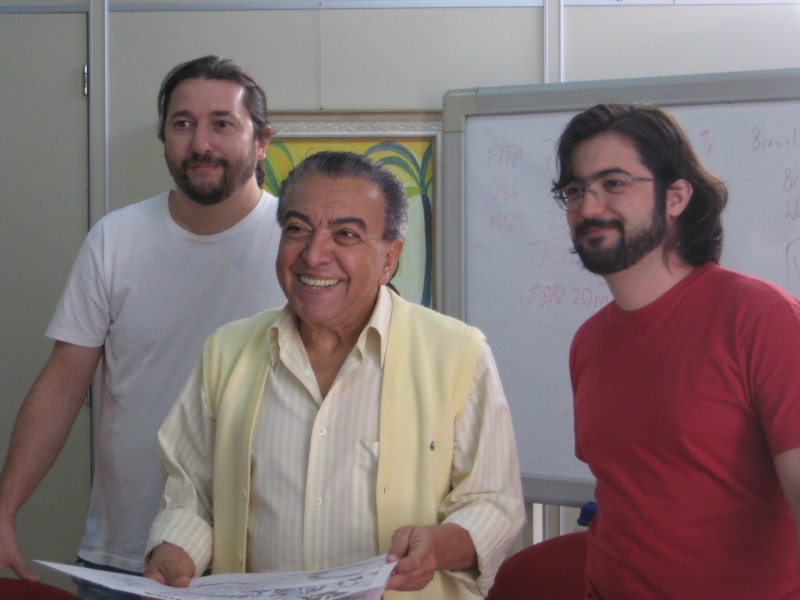 Foi fantástico. Difícil descrever em palavras. Foi um sonho de criança realizado! Desde pequeno, a Turma da Mônica sempre esteve presente na minha vida. Aprendi a ler, a desenhar e a ser cidadão com as historinhas. E sempre quis conhecer o Maurício, e o estúdio, e ver de perto a produção disso. Desde o momento que firmei a vontade de ser quadrinista, então, o desejo só aumentou. Nessa visita que fiz com o Danilo Beyruth à MSP, conhecemos não só o tour básico do estúdio (com todos aqueles artistas fantásticos criando as HQs… Você tem que ver, é muito legal; dá vontade de pegar uma mesa e começar a desenhar junto com eles), mas também o estúdio de dublagem dos desenhos animados, o arquivo do Maurício, que tem quase TUDO que ele já desenhou. Pegamos nas mãos a primeira tira do Penadinho, toda amarelada; e uma tira de Os Souzas, que quase ninguém conhece. Nessa tira, pude ver a técnica do Maurício, de pincel, pena, e cara, ele É mestre. Dá gosto de ver aquela qualidade de traço diretamente dos anos 70.