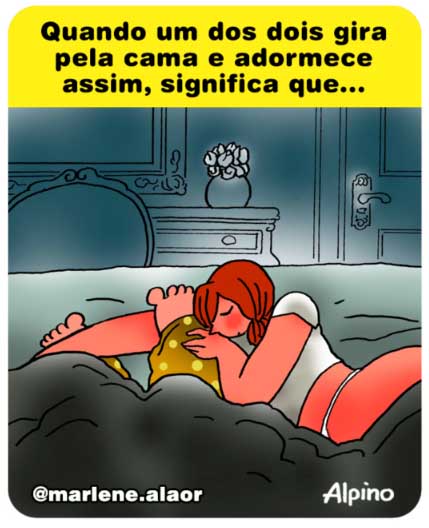 Assim surgiram três histórias curtas: “O dedo”, “O aniversário” e “O sonho recorrente.” Funciona mais ou menos assim: em um cartum publicado em setembro deste ano, o autor mostrava Marlene dormindo sorridente perto dos pés de Alaor e perguntava aos leitores o que teria acontecido para o casal dormir daquele jeito. Então, na história “O dedo”, ele mostra tudo o que aconteceu.
