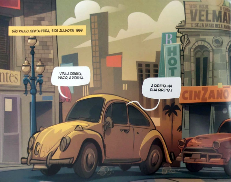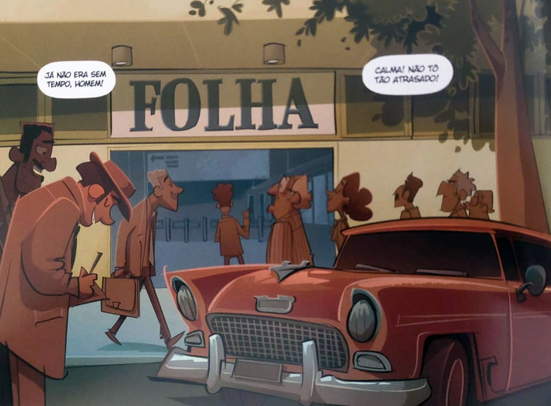 Importante ressaltar que Teixeira não foi o único a fazer pesquisa sobre o período. Os prédios, cenários, roupas, móveis e carros desenhados por Mauro Souza são minuciosos, detalhistas ao extremo em relação ao “mundo real” de então. E tudo isso no traço maravilhoso de Souza, que não à toa é diretor de arte da MSP, tem ilustrações publicadas nas principais revistas e jornais do país e um prêmio do Festival Anima Mundi por um curta-metragem de animação, entre outras coisinhas.