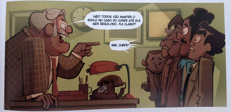 Aqui cabe dizer que o leitor mais atento não encontrará apenas pistas do crime na HQ, mas também uma série de referências e easter eggs no decorrer da Graphic Novel. Nenhuma surpresa para quem conhece o roteirista Flávio Teixeira, Além de ser um pesquisador de mão cheia, ele simplesmente adora ocultar referências das mais diversas nas HQs que escreve da Turma da Mônica, de cultura pop a brincadeiras envolvendo fatos específicos com os personagens da casa.