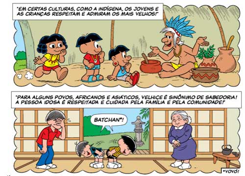 Aliás, é muito engraçado ver o exercício de futurologia de Rolo envelhecendo e os avós de alguns dos principais personagens da turminha. Também são mostradas as relações de culturas diferentes com os mais velhos e a ancestralidade por meio de personagens como Papa-Capim, Nimbus e Do Contra, e ainda Chico Bento e Vó Dita.