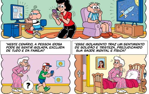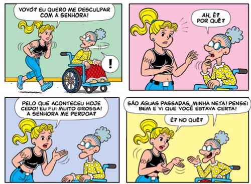 A HQ não para por aí: na sequência são mostradas formas de inclusão e tratamento correto aos idosos, com direito a mais avós de outros personagens sendo tratados com carinho e respeito.