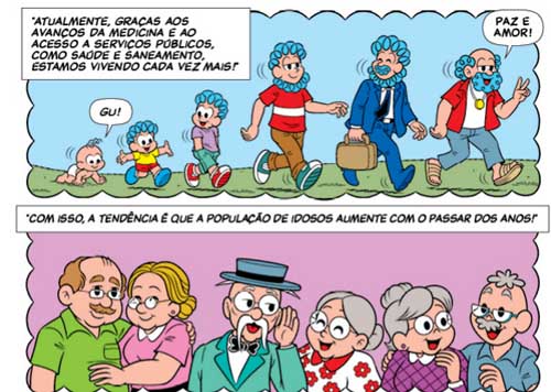 Como sempre, os roteiristas da turminha dão uma aula maravilhosa, explicando cada detalhe de maneira didática e com muito bom humor. Para mostrar o envelhecimento e a valorização da pessoa idosa de forma acessível para crianças e adolescentes, o gibi se utiliza de maneira inteligente dos personagens de praticamente todos os núcleos dos quadrinhos de Maurício.