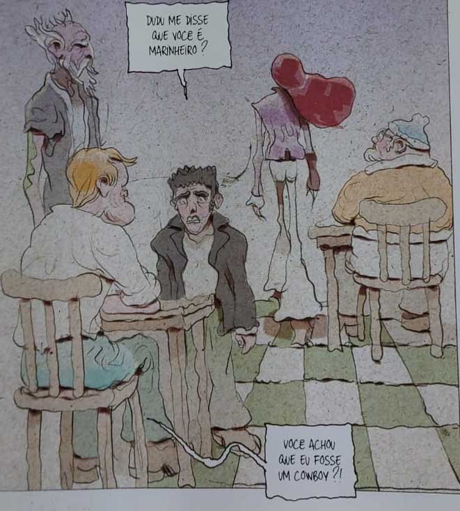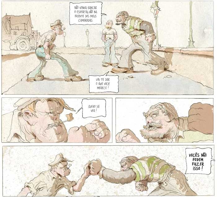 Aliás, não só ele. Ozanam coloca aqui personagens que muitos dos fãs que conhecem Popeye do desenho animado não irão reconhecer. Assim, Olívia começa a história com um namorado, chamado Ham, e um irmão, Castor. Os dois, assim como a magriça, são oriundos da tira Timble Theather, que Segar criou em 1919 e na qual Popeye apareceu pela primeira vez dez anos depois.