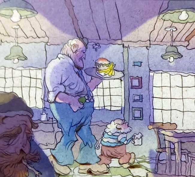 E, sim, Brutus – cuja inimizade com Popeye tem motivos mais palpáveis revelados – também frequenta o estabelecimento e tenta dar em cima da proprietária.