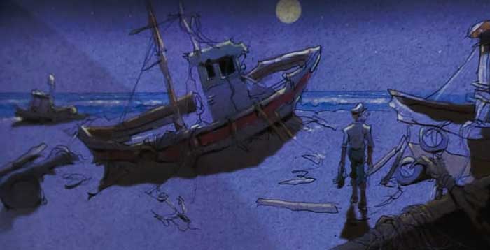 E, quando vai contratar Popeye para ir atrás do tesouro, tem com ele um remake do diálogo da tira original, na qual pergunta se o interlocutor é marinheiro e o lobo-do-mar responde com o costumeiro mal humor: “Você achou que eu fosse um cowboy”?