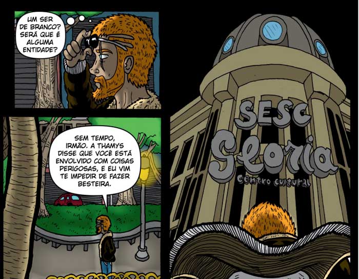 O Espírito Santo é lindo e, incentivado pelas leis de incentivo à cultura do estado (nunca canso de agradecer a Secult pela Funcultura), quis apresentar alguns cenários que conheço. Todos os lugares escolhidos eu mesmo já frequentei, então foi fácil para mim selecioná-los. Cada um deles também tem motivos específicos para serem escolhidos e, dessa forma, fazem a trama ir para frente. Quando tiverem oportunidade venham para o Espírito Santo e vejam por vocês mesmos os locais do quadrinho. Tenho certeza de que vão amar (o estado e o quadrinho).