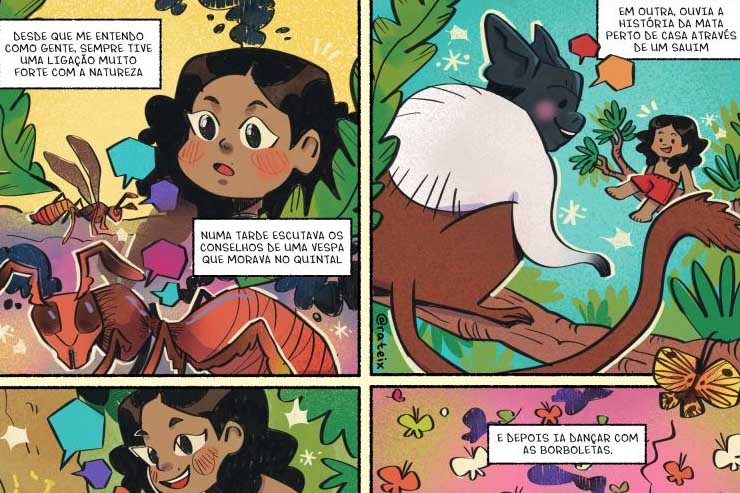“Heranças é um miniprojeto de tirinhas onde conto um punhado de experiências que tive e tenho com as encantarias que carrego, e foram passadas através de meus ancestrais”, conta Raquel.