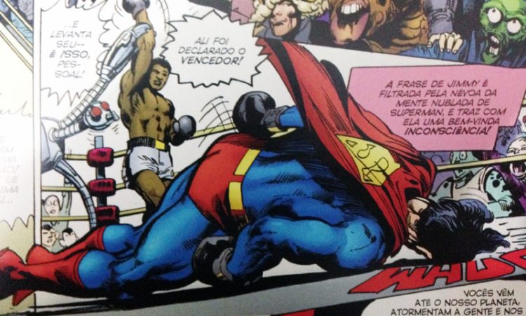 Muhammad Ali, o maior nome do boxe de todos os tempos, morreu em 4 de junho de 2016, aos 74 anos, em virtude de um choque séptico devido a causas naturais não especificadas. Medalhista olímpico e primeiro boxeador a ganhar o mundial dos pesados três vezes, Ali – que começou a carreira com o nome de batismo Cassius Clay, antes de se converter ao Islamismo – registrou oficialmente no ringue um total de 57 vitórias, sendo 37 delas por nocaute, e apenas cinco derrotas. Mas há ainda pelo menos mais uma vitória por nocaute, não oficial, que é pouco conhecida dos fãs do esporte (e até mesmo dos fãs de quadrinhos): Muhammad Ali levou à lona ninguém menos que o Superman.