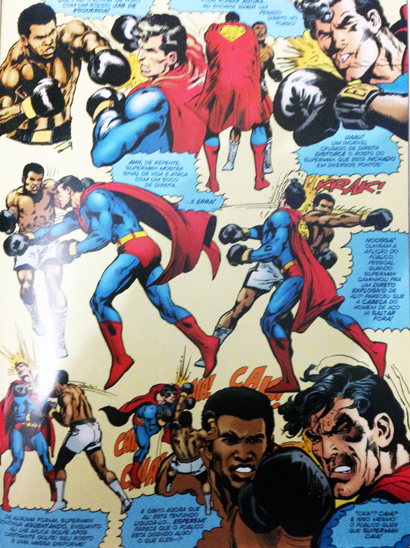 Antes da luta, Superman segue para a Fortaleza da Solidão ao lado de Ali, suprime os próprios poderes e dá uma de sparing do campeão mundial. Depois, na luta de verdade, o boxeador dá uma tremenda surra no kryptoniano, que se recusa a cair. Ali chega a pedir aos “juízes” que declarem nocaute técnico, o que eles não concedem, e na sequência acaba fazendo com que o herói realmente beije o chão, nocauteado.