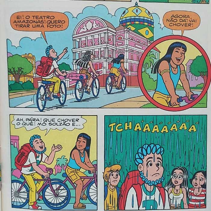 Por fim, vale registrar uma outra mudança de rumo dos personagens surgida nesta trilogia: Jaiminho, até então um moço bonzinho e um pouco ciumento com quem Tina costumava namorar de maneira bastante estável nos gibis, passou a ser um ex-namorado apontado como bonito, mas burro. E acaba se aliando à vilã terrestre da história, a invejosa Rúbia. E o termo vilã “terrestre” aqui não foi usado à toa, já que a HQ traz vários personagens alienígenas, inclusive alguns malvados que têm uma relação de parentesco com, quem diria, os dinossauros.