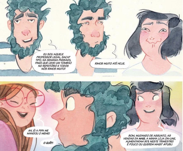 Outra bobagem que é facilmente revidada não só pela arte de Tina como pelos trabalhos anteriores da moça, como o já citado Gata Garota e a Graphic Novel Estranhos.