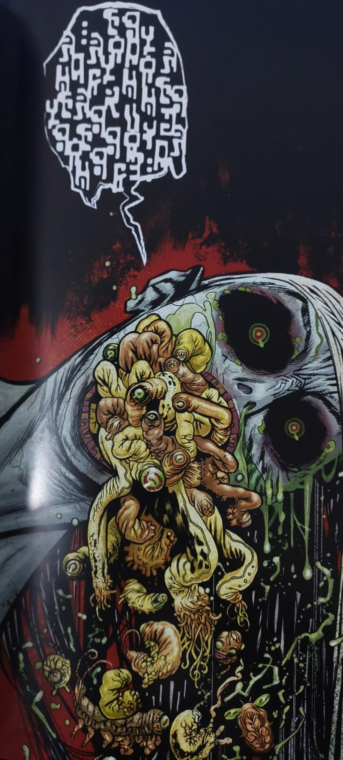 A aventura segue por tempos e cenários (inclusive espaciais) que vão se sucedendo e prolongando por 460 páginas de, como a própria editora descreve acuradamente, “horror cósmico, ação brutal e crítica social em um mundo devastado por monstros e heróis deformados.”