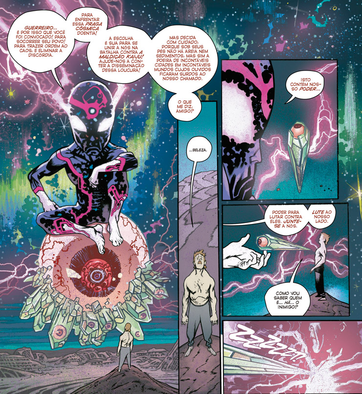 O resultado dessa união improvável seria algo parecido com Ultramega, HQ de autoria de James Haren lançada pela Devir – e que, inclusive, teve uma caprichada preview de 28 páginas distribuída gratuitamente pela editora em todo o Brasil na Virada Nerd 2025.