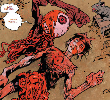 E sangue e vísceras, que ganham ainda mais destaque na arte expressiva de Haren e nas cores intensas de Dave Stewart. Muito sangue e muitas vísceras.
