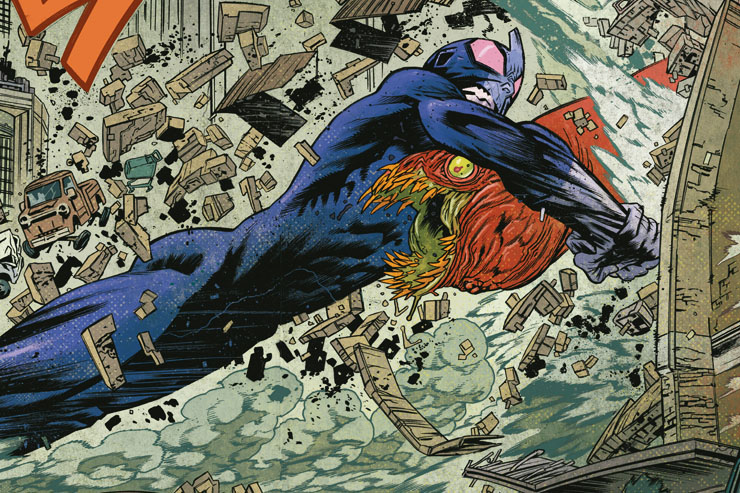 Neste sentido, a imaginação de James Haren não tem limites. A terra arrasada se torna uma sociedade pós-apocalíptica com humanos tentando sobreviver ao caos, e com novos kaijus e heróis e surgindo – ou ressurgindo de maneira ainda mais bizarra.