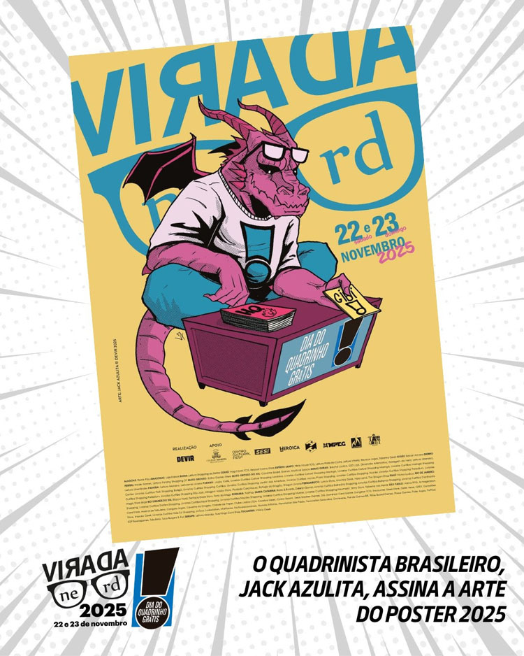 Novembro está chegando e quem gosta de quadrinhos e cultura pop tem que ficar de olho no calendário para não se esquecer de um final de semana imperdível: nos dias 22 e 23 do mês que vem será realizada a edição 2025 da Virada Nerd e do Dia do Quadrinho Grátis em 73 cidades de 21 estados do Brasil. Idealizado pela Devir Brasil há cerca de uma década – com inspiração no Free Comic Day promovido nos EUA anualmente em maio –  a iniciativa promove atividades gratuitas em todo território nacional voltadas à cultura pop, quadrinhos e jogos analógicos (aí inclusos os de tabuleiro e os cards).